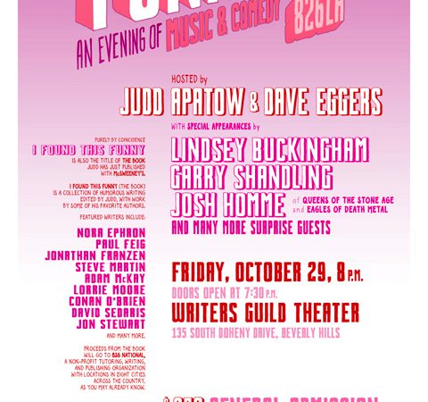 Good evening! Remember the thing I posted about the upcoming 826LA event hosted by Judd Apatow? Well, it’s really, really